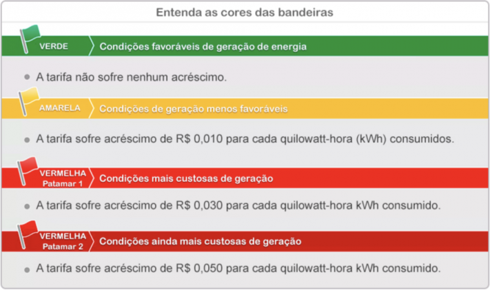 A Agência Nacional de Energia Elétrica (Aneel) decidiu nesta quinta- feira (29) manter a bandeira verde em abril. É o quarto mês consecutivo que os consumidores não vão pagar taxa adicional nas contas de luz. De acordo com a agência reguladora, a decisão indica que a situação dos reservatórios continua a melhorar. O sistema de bandeiras tarifárias foi instituído pela Aneel, em 2015, com objetivo de sinalizar ao consumidor o custo real da geração de energia elétrica. As cores das modalidades –verde, amarela ou vermelha– indicam se haverá ou não acréscimo no valor da energia a ser repassada ao consumidor final.